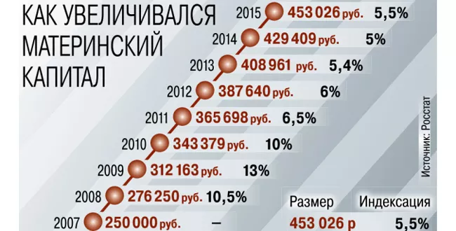 С момента начала действия программы материнского капитала, а именно с 2007 года, мы привыкли к тому, что размер выплат постепенно рос. Изначально родителям, подпавшим под условия программы, выдавали 250 тысяч рублей. Сегодня сумма выросла до 453 тысяч рублей.
