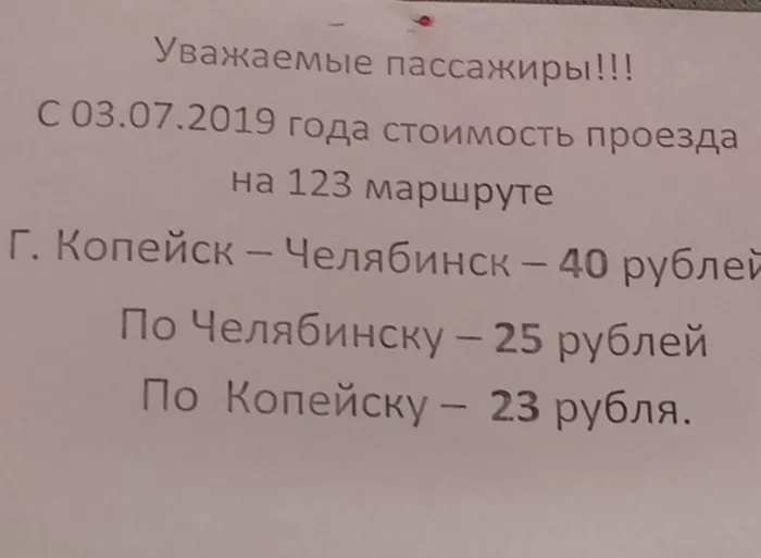 Стоимость проезда в маршрутном такси № 123 подорожает с 3 июля. Как оповестил перевозчик пассажиров в объявлении, цена поездки составит 40 рублей.