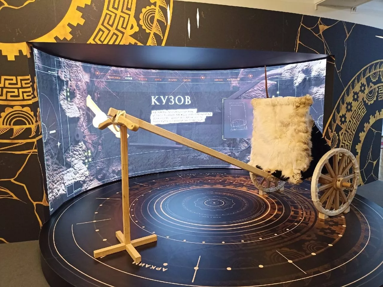 Отдельным блоком представлена древняя колесница – та самая, которая получила известность во многом благодаря фильму. Блок рассказывает об открытии археологического памятника и раскопках, проводимых учеными.
