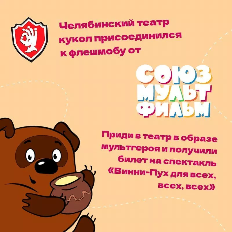 «Легендарная киностудия подарила миллионам мальчиков и девочек всей страны Крокодила Гену, Карлсона, почтальона Печкина, зайца и волка из «Ну, погоди!» и десятки других персонажей. Эти герои любимы детьми вне зависимости от возраста. Постановщики и драматурги театров кукол всей страны в своей работе часто вдохновляются хорошо знакомыми и совсем новыми персонажами «Союзмультфильма». И маленькие зрители всегда с огромной радостью встречают их на сцене. Всем ребятам, которые до 1 июля придут на спектакль в образе мультгероя «Союзмультфильма», мы подарим пригласительный билет на спектакль «Винни-Пух для всех, всех, всех», – сообщил заместитель директора по развитию Челябинского государственного театра кукол им В. Вольховского Никита Плеханов.