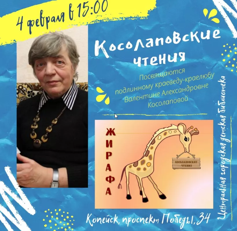 Это традиционное мероприятие посвящено памяти известного копейского краеведа, автора нескольких книг об истории города, педагога, исследователя и просто замечательного человека Валентины Косолаповой.