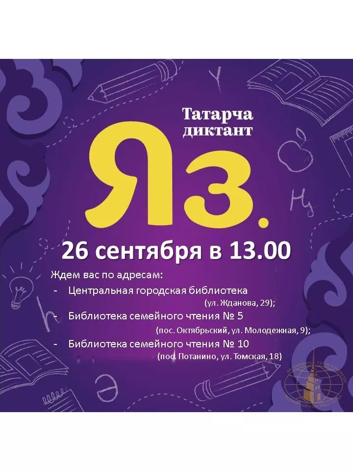 26 сентября в 13:00 по всему миру пройдёт образовательная акция по проверке грамотности на татарском языке «Татарча диктант».