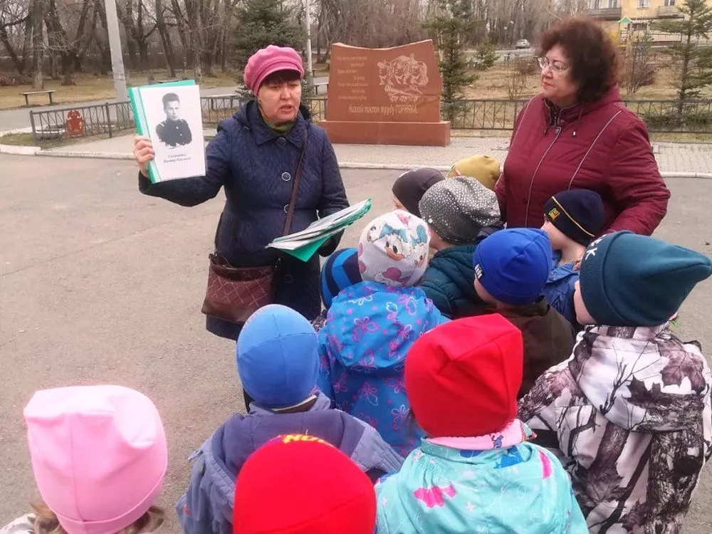 19 апреля воспитанники филиала детского сада № 37 вместе с сотрудниками детской библиотеки № 8 поселка Горняк совершили экскурсию к стеле с высеченной надписью: «Низкий поклон труду горняка», которая установлена возле Дома культуры имени 30 лет ВЛКСМ.