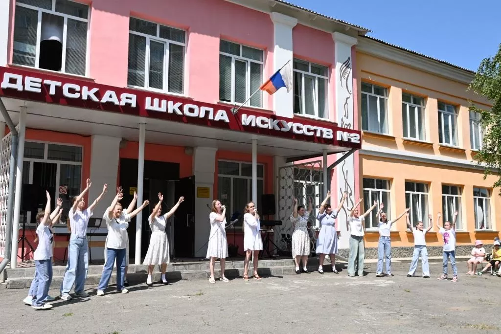 Сегодня Детская школа искусств №2 представила на суд зрителей, которыми стали воспитанниками заведения дополнительного образования и их родители, необычный концерт. Сценой для юных артистов стало крыльцо ДШИ, а зрительный зал – тень деревьев с лавками во дворе.