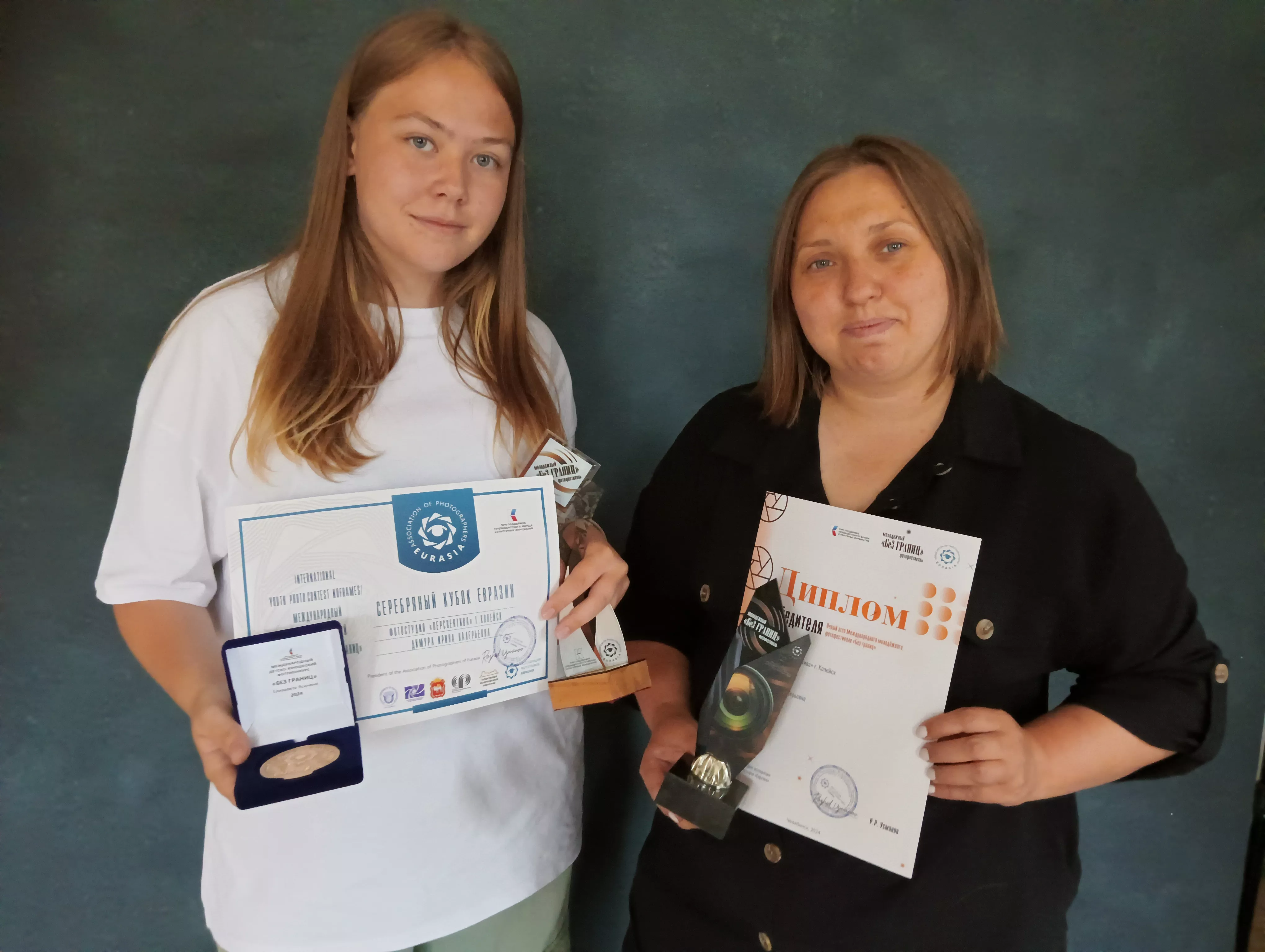 - Наша команда, - сообщила Ирина Димура, - до сих пор не верится (!), заняла в этом серьёзном конкурсе второе место, уступив лишь гостям из Южной Африки (ЮАР) и опередив в тройке призёров фотографов северной столицы страны - Санкт-Петербурга. Гран-при завоевали фотографы Челябинска. В копилке копейчан одна золотая медаль – её завоевал двенадцатилетний Илья Дюжев с работой «Колоски». Серебряная у десятилетней Дарьи Макаровой с работой «Когда внутри музыка». Бронзой отмечена работа Елизаветы Ясючени (14 лет) «Место силы». Специальных наград «Выбор жюри» удостоились ещё четыре работы юных фотографа – «Бой» десятилетнего Глеба Шерстобитова, «Разлом» Виктории Вилль (13 лет), «Скрипачка» Даши Макаровой (10 лет) и «Флаг» Ильи Кербель (10 лет). Все ребята воспитанники Ирины Димуры.