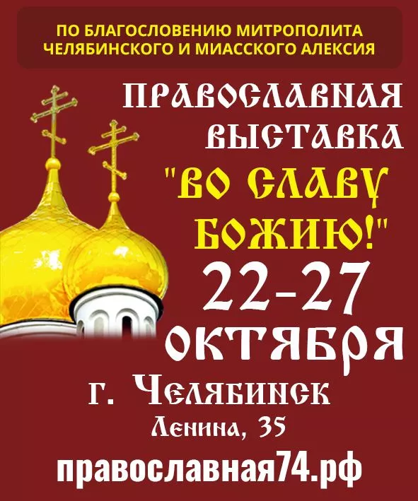 С 22 по 27 октября в челябинском Конгресс Холле на улице Ленина пройдет важное мероприятие для всей православной общественности – выставка «Во Славу Божию!».