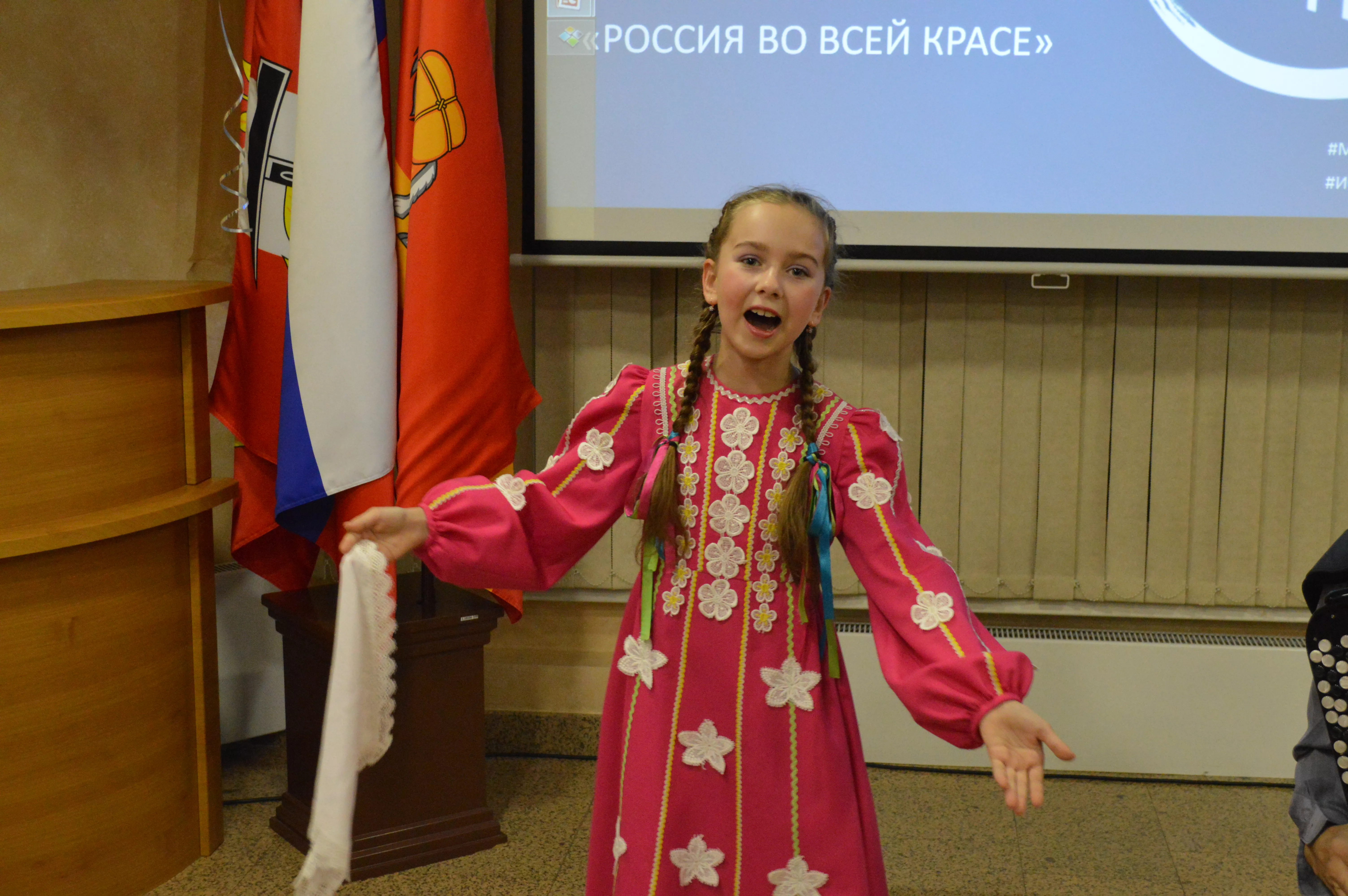 Открыл вечер в конференц-зале музея семейный дуэт Протасовых – Дарья (соло) и Николай (баян) песней "Светит месяц". Затем, перед гостями выступали Софья Суханова с народной песней "Матушка Земля", Анна Андрианова исполнила "Травушку- муравушку", башкирский танец продемонстрировала преподаватель хореографии Светлана Зяхор. Все посетители поучаствовали в викторине по истории России.