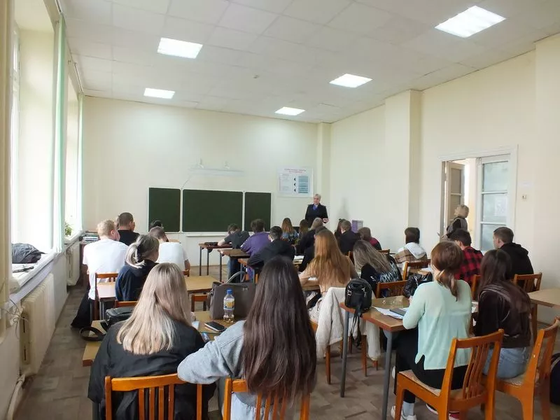 Представитель правоохранительных органов рассказала студентам об особенностях приема на службу в полицию и о специфике работы в правоохранительных органах. Отдельно Рита Свирь остановилась на льготах, компенсациях и мерах защиты сотрудников ОМВД, ветеранов и их семей.