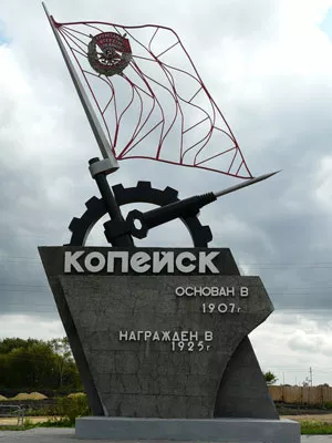 На въезде в город с шахтерским прошлым сотни машин проносятся мимо монумента-указателя. На нем высечено: «Копейск. Основан в 1907 г. Награжден в 1925 г.» и изображен первый советский орден Красного Знамени.