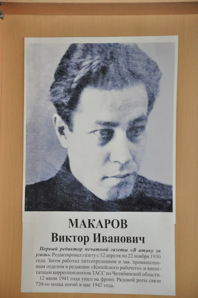 Виктор Иванович Макаров (1906–1942), журналист, один из организаторов печати в Копейске. Рабкором писал материалы в первую газету на копях «Красное жало».