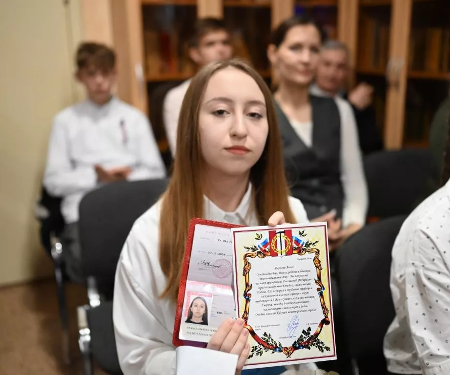 - Сегодня, — обратился к собравшимся Евгений Константинович, — у нас двойной праздник. Это особенная дата. Конституция России — основной документ страны, по которому мы живём, развиваемся и идём вперёд. Каждый из вас сегодня получит паспорт и будет примером для подрастающего поколения. Вы будете продолжением нашего города и нашей Отчизны, и мы верим в вас, гордимся вами и знаем, что вы всегда придёте на защиту нашей великой страны.