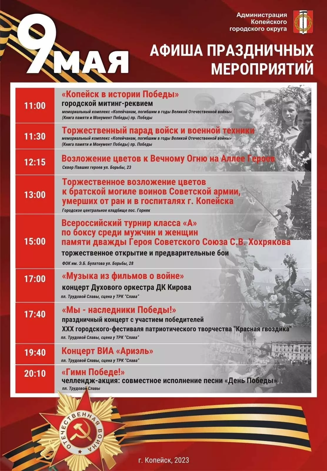 Афиша праздничных мероприятий 9 мая