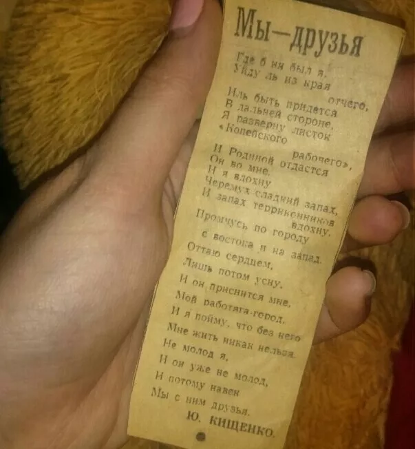 Когда я спросила, что это за стихотворение и почему оно хранится в ее шкатулке, бабушка ответила, что оно ей очень понравилось и она решила его вырезать из газеты и сохранить на память. И я вспомнила, как бабушка много лет назад читала эти строки вслух мне, маленькой внучке.