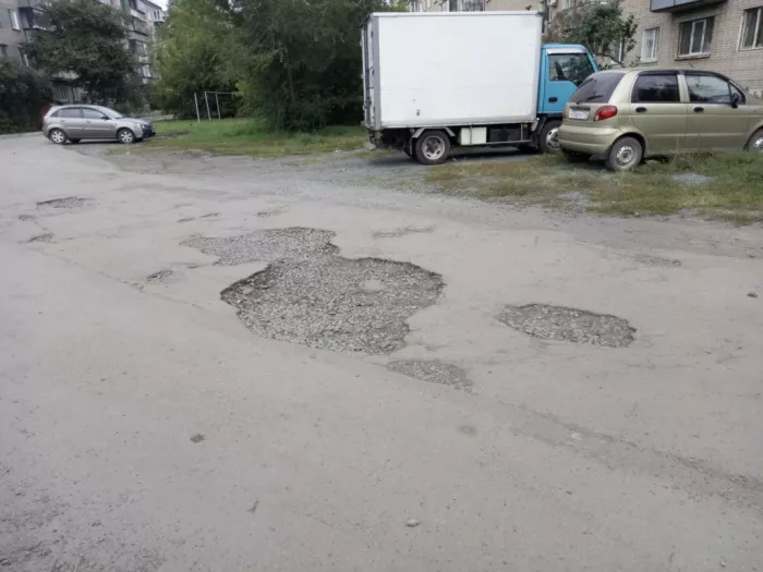 «А у нас во дворе вот такая картина с мая. Иногда декор меняется на автошины или тумбочки и стулья с помойки. Декорации меняются, ямы остаются. Живем на проспекте Славы. Вот и славимся понемногу!» - грустно шутит Бэла.