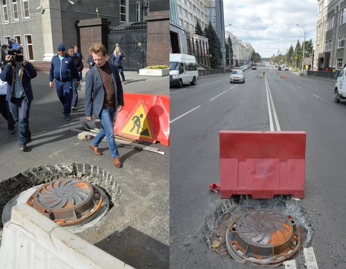 - В самом центре города произошла безобразная ситуация с люками. Как такое можно было допустить, я не понимаю, открытые колодцы стоят на проспекте Ленина, на Энгельса, где огромный трафик, днем и ночью ездят машины и оставляют колеса, подвески, амортизаторы. Центр города к концу недели должен быть приведен в порядок!