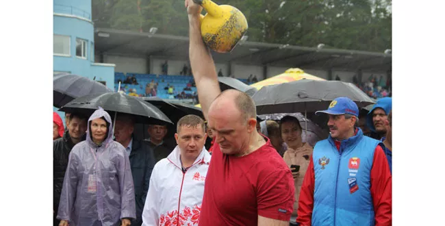 В фестивале принял участие губернатор Челябинской области Борис Дубровский, он отжался и поднял пудовую гирю 60 раз.