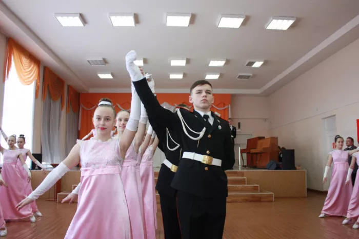И вот ведущие Дмитрий Петроченков и Елена Ульянова объявляют о начале бала. В торжественно украшенный зал ворвались звуки музыки, пары исполняют «королевский» танец полонез. Танцы сменяют один другой, но все же прекрасней всего на любом балу остается нежный и чувственный вальс. Он особенно нравится кадетам, может быть, именно поэтому они исполнили сразу несколько его вариантов. А еще на балах всегда было принято играть в танцевальные игры. Юные кадеты продемонстрировали танец с шарфом (когда дама, оставшаяся без пары, накидывает шарф на плечи другой дамы и уводит у нее кавалера, а та в свою очередь уводит другого кавалера, и все повторяется).