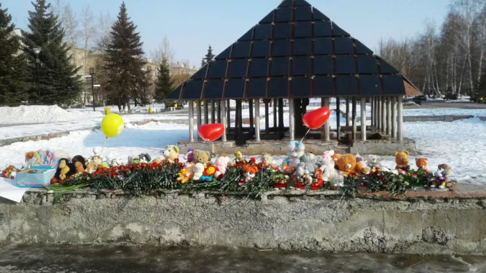 Вчера и сегодня люди несут сюда игрушки, красные гвоздики и воздушные шары, которые в эти дни смотрятся отнюдь не празднично. Гвоздики- чётным числом, игрушки- как символ потерянного детства, а шарики символизируют невинные детские души, погибшие в трагедии в Кемерово.