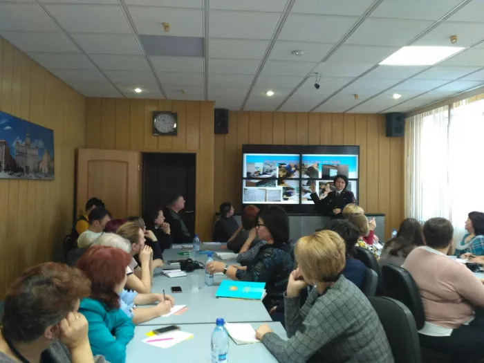 Люция Масалимова рассказала коллегам о новых формах и методах работы с детьми, о значении социальных сетей и социальной рекламы в пропаганде безопасности дорожного движения. Андрей Горланцев поделился опытом взаимодействия родительской общественности с управлением образования и ГИБДД в работе по формированию транспортной культуры.