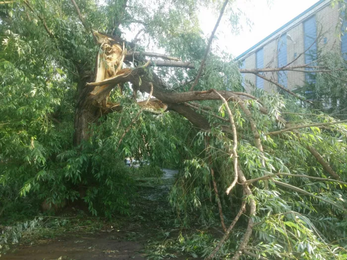 Поломанные деревья, оборванные провода, помятые машины. Где-то шквал бросил на автомобиль пластиковый контейнер, оставив серьезную вмятину, во многих местах города на машины попадали мощные стволы деревьев.
