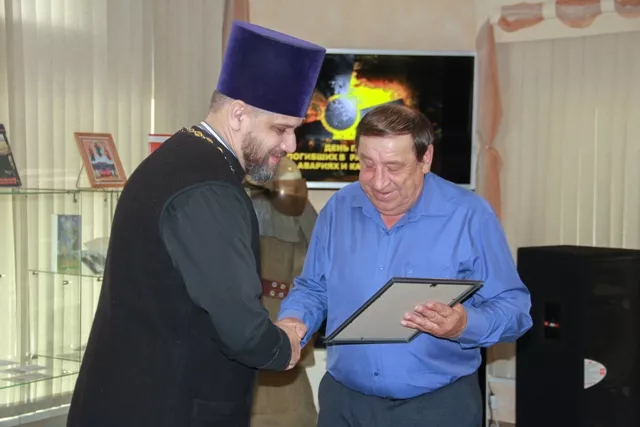 В рамках Дня памяти отец Игорь, священник Храма Покрова Пресвятой богородицы вручил копейским ликвидаторам Благодарственные письма за подписью митрополита Челябинского и Миасского. «Русская православная церковь чтит чернобыльцев как мучеников и молится за них. Эти люди ценою собственных жизней защитили мир и спасли тысячи жизней других людей», - сообщил отец Игорь.