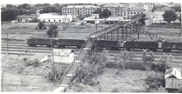 На снимке, датированном началом 60-х годов, изображен пешеходный мост через железнодорожные пути, которые проходили по нынешнему проспекту Коммунистическому. В этом месте располагалась станция Серго-Уфалейская.