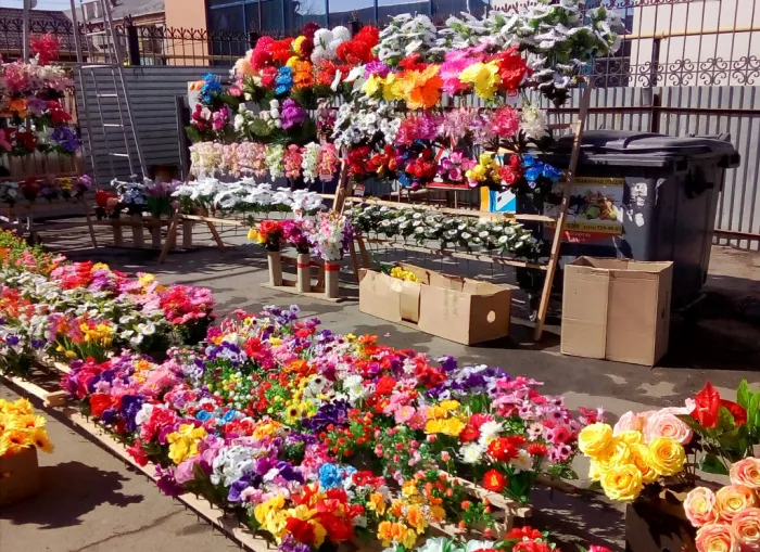 На кладбище в этот день идут и едут с цветами и венками. Приобрести их в Копейске можно в традиционных точках, которые заметны издалека яркими красками среди тусклых апрельских пейзажей. Цены на востребованный в этот день товар начинаются с довольно демократичных цифр: большие желтые подсолнухи на ярмарке рынка «Янтарь» можно купить от 5 рублей за штучку. Скромные милые букетики стоят 25-30 рублей. А большой яркий букет обойдется в 250-300 рублей.