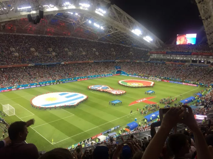 Игра, на которую мы попали, завершилась довольно неожиданным результатом. Хотя фаворитом считали команду Португалии, победил, хотя и с небольшим преимуществом, Уругвай.