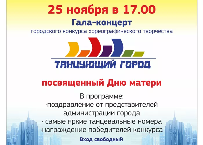 19 ноября на сцене ДК имени С. М. Кирова с самыми яркими своими номерами выступили более сорока танцевальных коллективов Копейска. Общее количество участников превысило тысячу человек. Жюри и зрителям конкурса были представлены 85 номеров в самых разных направлениях хореографического творчества: эстрадный, современный, народный, классический, бальный танец. Перед жюри стояла сложная задача — дать компетентную оценку уровню исполнительского мастерства и качеству балетмейстерской работы. Участники с нетерпением ждут результатов. Итоги конкурса будут подведены в субботу, 25 ноября, на праздничном гала-концерте, посвященном Дню матери, который начнется в 17:00.