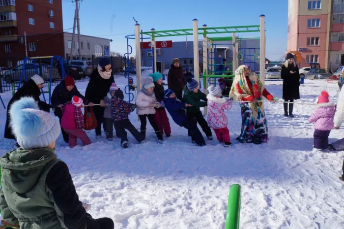 По сценарию праздника, Забавница - Зима никак не хотела уходить в свои владения! Проводить её и встретить Весну помог оптимизм ребятишек и родителей. Зажигательное настроение организаторов и интересная программа привлекли жителей домов со всей округи. Множество конкурсов, в том числе: традиционное перетягивание каната, хороводы, песни, пляски, ленточная карусель, и,конечно, традиционное для «Масленицы» угощение чаем и блинами , не могли не порадовать всех присутствующих на празднике. Все,кому повезло участвовать, говорили,что праздник удался на славу, и такие проводы зимы запомнятся им надолго, как минимум, до следующего марта!