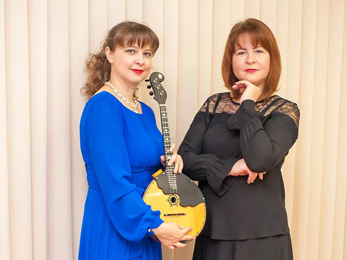 Перед присутствующими выступила лауреаты международных конкурсов: солистка Государственного оркестра «Малахит» домристка Мария Лебедева и концертмейстер Татьяна Абрамова (фортепиано).