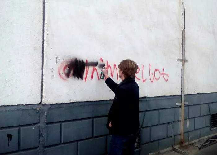 Участники рейда закрасили надписи на фасадах домов, гаражей и заборах на улицах Копейска, демонстрирующие номера телефонов и адреса сайтов распространителей наркотиков.