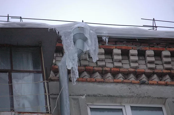 Как написали наши читатели, житель делает это регулярно по просьбам соседей: на снимке видно, что опасные ледяные конусы нависают прямо над входом в подъезд, не защищенный даже козырьком.