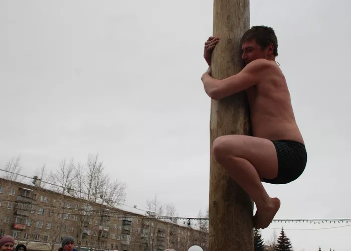 Не менее острая борьба развернулась среди мужчин — ловких, сильных и смелых. В этом году аж четырнадцать богатырей сумели добраться до вершины масленичного столба — такого количества покорителей высоты организаторы городских проводов зимы доселе не видывали. Чтобы определить, кому в конечном итоге достанутся подарки, пришлось устраивать дополнительный конкурс — состязание по подъему гири.