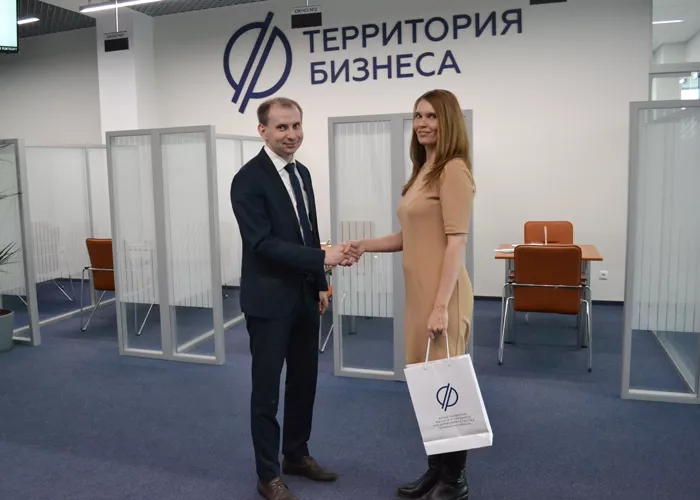 Артур Юсупов – генеральный директор Фонда развития МСП поздравил юбилейного клиента, вручил подарок от «Территории Бизнеса» и пожелал успешной реализации поставленных задач. Оксана Карымова обратилась в «Территорию Бизнеса», чтобы получить консультацию по поводу получения займа в Центре микрофинансирования.
