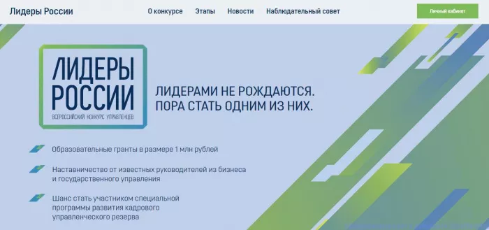 «Бросьте вызов тысячам управленцев и попадите в сообщество лидеров, которые определят будущее России», - такой призыв размещен на официальном сайте проекта.