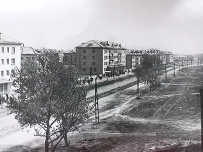 Внимательно рассмотрим панорамный снимок проспекта Победы, чье название символизировало не только победу над врагом, но и победу над бедностью, землянками, непролазной грязью. Территория, поместившаяся в кадре, была царством землянок.