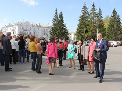 Согласно легенде в 10:00 часов муниципальные служащие получили оповещение о необходимости срочно освободить здание администрации. Используя различные пути эвакуации, в том числе и наружную лестницу третьего этажа, работники в оперативном порядке покинули здание и встретились на условном место сбора – площади Красных Партизан.