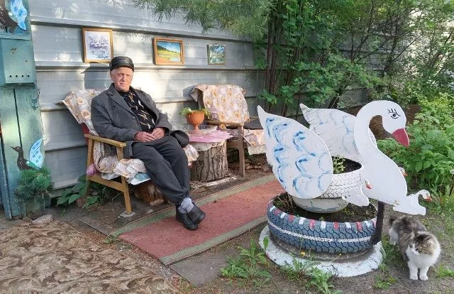 Борису Ивановичу семьдесят, но бодрячок тот ещё. Сидеть на уютном месте, которых устроено у него немало, не в его правилах. Застал мастера гуляющим на улице среди созданных им птичьих композиций. На языке вертится избитая фраза: пенсионер всем пример. А ведь точно – Борис Брюховецкий именно пример для людей немолодых, доказывающий, что в любом возрасте можно найти себе применение и освоить новый вид ремесла.
