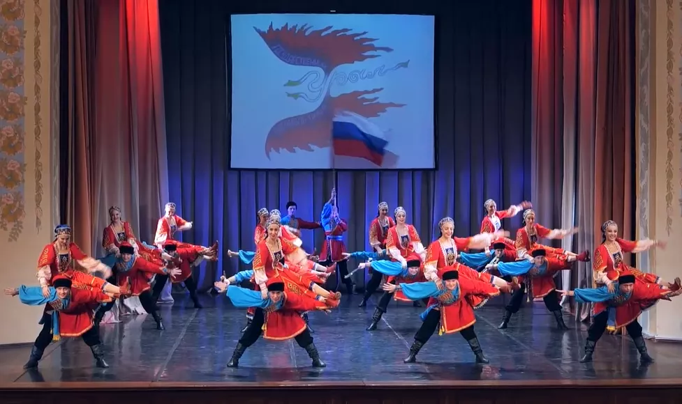 Коллектив ансамбля танца «Урал» исполнил на сцене Челябинской филармонии один из своих любимых номеров – игрища уральских казаков «Бышенька». Начинается выступление со сложенной из рук фигуры латинской буквы «Z», ставшей символом поддержки российских военных. Далее артисты ансамбля выстраиваются в букву «Z», а после пускаются в пляс.