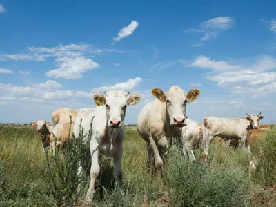 | Симменталы - порода домашних быков. Мясной тип, созданный целенаправленным скрещиванием маток отечественной симментальской породы, быками-производителями симментальской породы немецкой и американской селекций мясного направления продуктивности (животные высокой молочности и умеренного жироотложения). |
