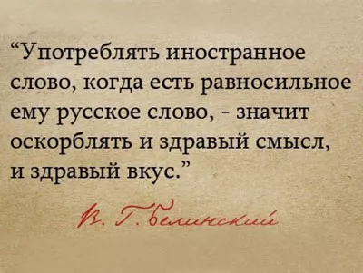 Недавно пришлось мне услышать в автобусе занятный разговор — о чем бы вы думали? — о вреде иностранных слов. «Неужели нельзя писать по-русски! А то куда ни глянь – всюду «мерчандайзеры» да «франшиза» и прочая иноземщина!» — возмущалась немолодая дама в соломенной шляпке.