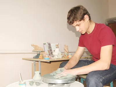 — Хочется достичь идеала, но пока не все получается, — юноша нажимает на педаль гончарного круга, чтобы контролировать процесс лепки. – Главное – поймать центр, почувствовать глину руками. Это очень непросто. Нужно постоянно смачивать изделие водой, выравнивать. Потом готовое изделие отправляют в печь для обжига. А уж затем расписывают.