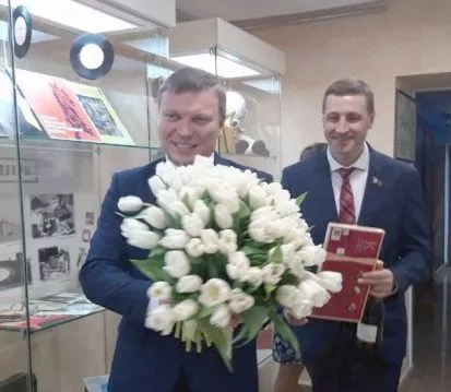 Андрей Фалейчик совместно с председателем городского Собрания депутатов Евгением Гиске в преддверии праздника поздравил в музее представительниц прекрасного пола.