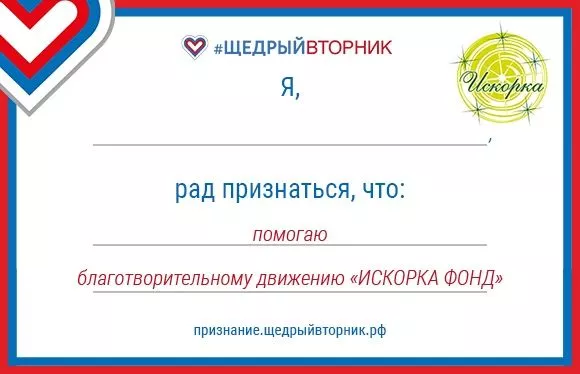 Сделать пожертвование в фонд «Искорка»,
