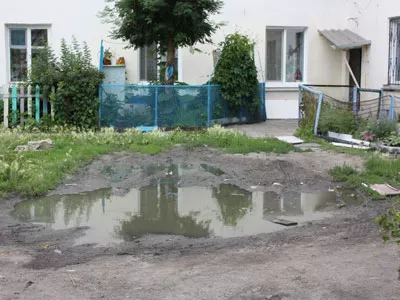 В редакцию «Копейского рабочего» обратилась Валентина Петровна Олейникова, которая активно пытается вместе с другими собственниками квартир решить одну из коммунальных проблем своего дома. Прямо посреди грунтового двора двухэтажной постройки располагается трехметровая лужа, которая не пересыхает. Бугристый рельеф этой местности годами создавали грузовые машины, которые подъезжали к мусорным бакам. Рядом с домом находится детский сад, куда ежедневно на грузовых авто привозят продукты. Неповоротливые грузовики даже сшибали фонарный столб во дворе. В остальном же искусственный «водоем» резко контрастирует с оформленной руками жильцов детской игровой зоной и образцовым состоянием подъезда Валентины Петровны.