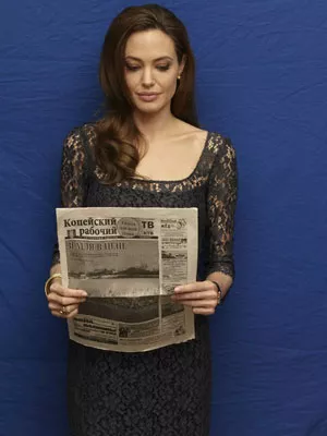 Фото Анджелины Джоли с газетой "Копейский рабочий" в руках
