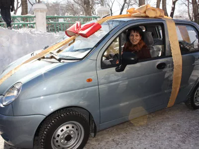 Новенький, перевязанный бантом «Daewoo Matiz» ожидал свою хозяйку прямо у школьного крыльца. Михаил Конарев отметил, что труд учителя очень значим и должен приносить не только моральное удовлетворение: