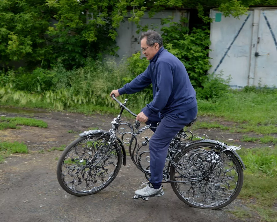 Копейчанин, пожарный по роду профессии, всё свободное время отдаёт своему увлечению – ковке металла. Мы рассказывали о нём в № 52 «Копейского рабочего» от 29 декабря 2023 года в материале «Его работы в огне не горят». Там мастер делился планами сделать кованый велосипед своими руками. И вот машина «для суровых уральских мужиков» готова.