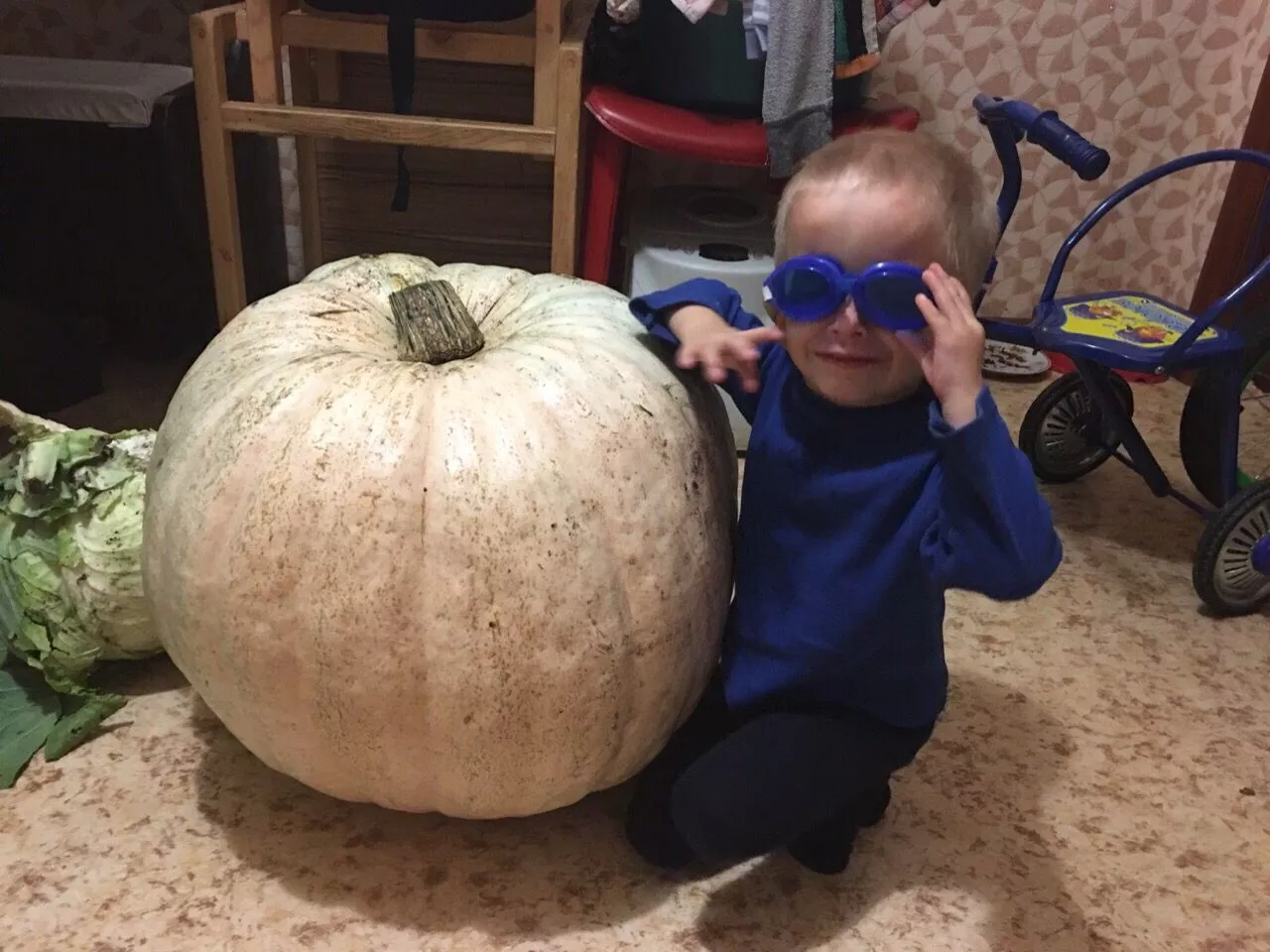 В социальных сетях набирают популярность посты с фотографиями урожая, который удалось собственноручно вырастить на своем приусадебном участке. На днях копейчанин выложил фото тыквы весом 28 килограммов. Рядом с гигантом восседает довольный малыш.